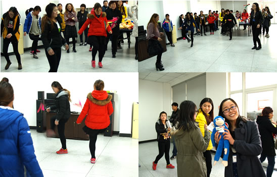 2016年03月08日中午11:00至12:00我公司为庆祝三八国际妇女节,同时为提高企业文化、丰富员工生活内容,在活动室举办了一场有趣的踢毽子比赛,现场气氛热烈而活跃。活动结束后还为员工们颁发了奖品。